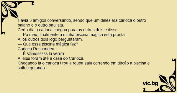 Havia 3 amigos conversando, sendo que um deles era carioca o outro baiano e o outro paulista.