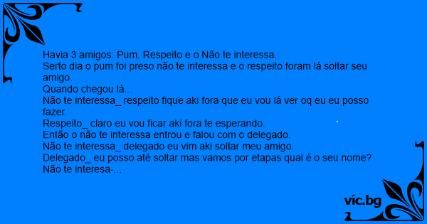 Havia 3 amigos: Pum, Respeito e o Não te interessa.