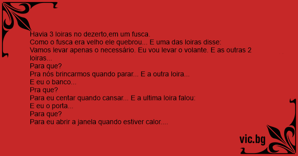 Como o fusca era velho ele quebrou... E uma das loiras disse: