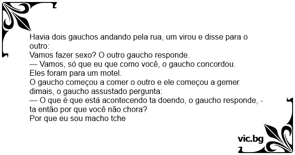 O gaucho começou a comer o outro e ele começou a gemer dimais, o gaucho assustado pergunta: