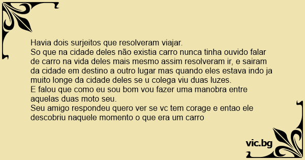 Seu amigo respondeu quero ver se vc tem corage e entao ele descobriu naquele momento o que era um carro