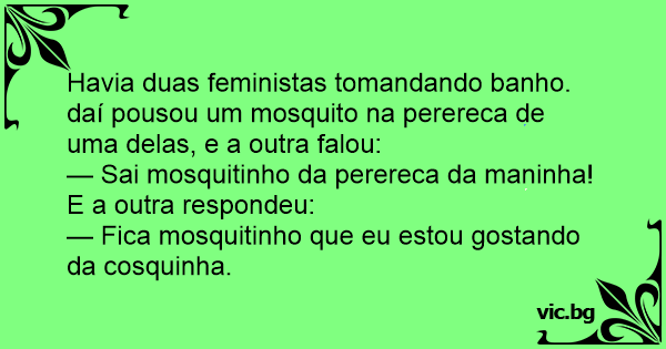 Havia duas feministas tomandando banho. daí pousou um mosquito na perereca de uma delas, e a outra falou: