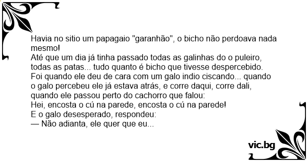 Havia no sitio um papagaio "garanhão", o вiсhо não perdoava nada mesmo!
