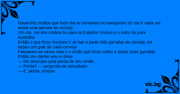 Havia três irmãos que todo dia se sentavam no banquinho do bar e cada um bebia uma garrafa de cerveja...
