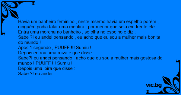 Havia um banheiro feminino , neste msemo havia um espelho porém , ninguém podia falar uma mentira , por menor que seja em frente ele .