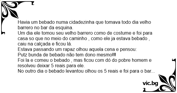 No outro dia o bebado levantou olhou os 5 reais e foi para o bar beber.