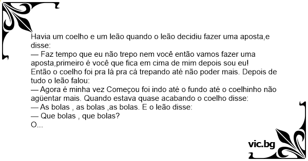 Havia um coelho e um leão quando o leão decidiu fazer uma aposta,e disse: