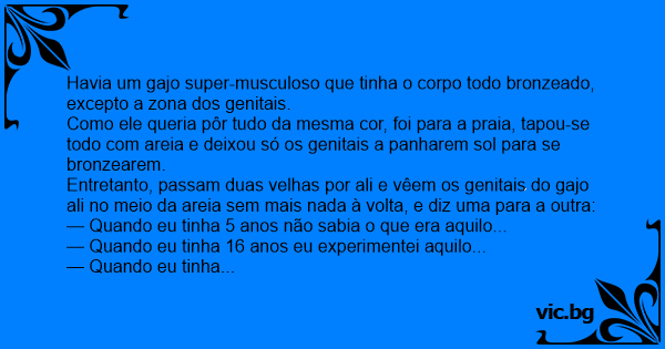 Como ele queria pôr tudo da mesma cor, foi para a praia, tapou-se todo com areia e deixou só os genitais a panharem sol para se bronzearem.