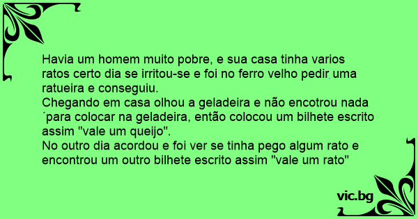 No outro dia acordou e foi ver se tinha pego algum rato e encontrou um outro bilhete escrito assim "vale um rato"