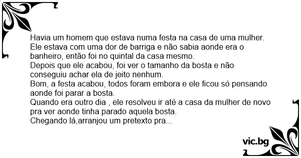 Depois que ele acabou, foi ver o tamanho da bosta e não conseguiu achar ela de jeito nenhum.