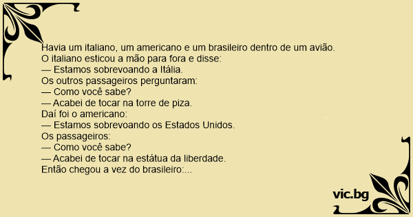 Havia um italiano, um americano e um brasileiro dentro de um avião.
