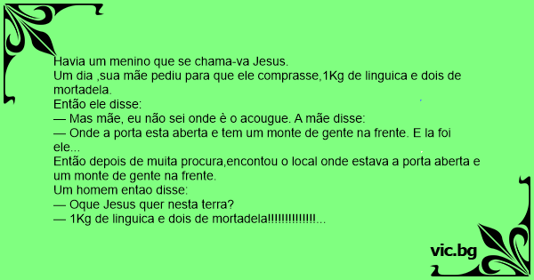 — Mas mãe, eu não sei onde è o acougue. A mãe disse: