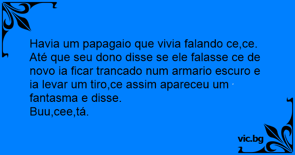 Até que seu dono disse se ele falasse ce de novo ia ficar trancado num armario escuro e ia levar um tiro,ce assim apareceu um fantasma e disse.