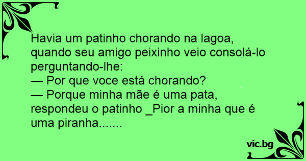 — Porque minha mãe é uma pata, respondeu o patinho _Pior a minha que é uma рirаnhа.......