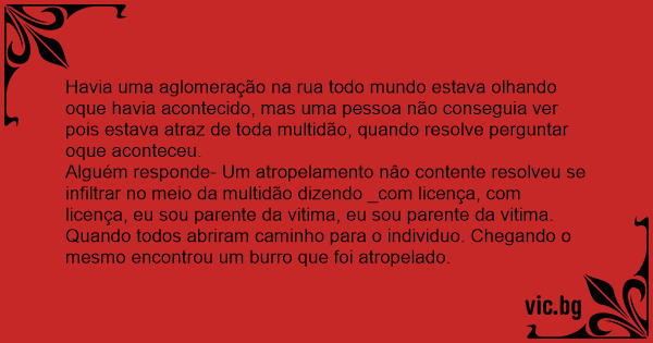 Alguém responde- Um atropelamento nâo contente resolveu se infiltrar no meio da multidão dizendo _com licença, com licença, eu sou parente da vitima, eu sou parente da vitima.