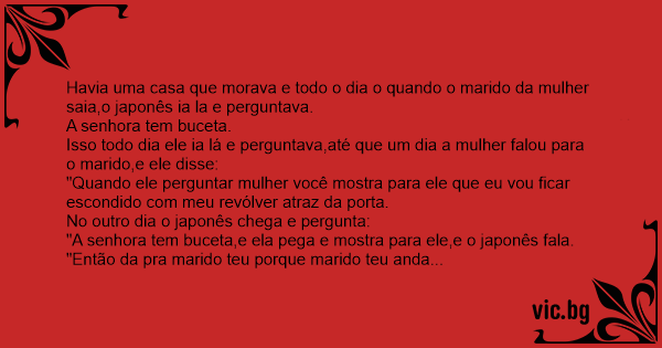Havia uma casa que morava e todo o dia o quando o marido da mulher saia,o japonês ia la e perguntava.