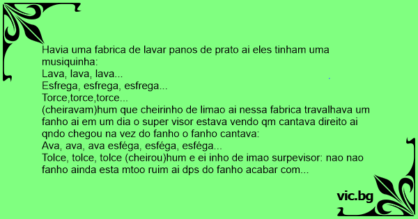 Havia uma fabrica de lavar panos de prato ai eles tinham uma musiquinha: