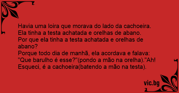 Havia uma loira que morava do lado da cachoeira. Ela tinha a testa achatada e orelhas de abano.