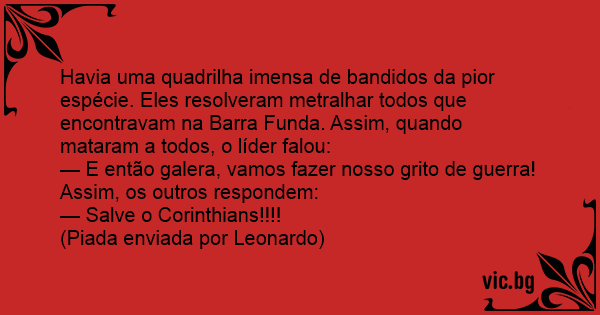 Havia uma quadrilha imensa de bandidos da pior espécie. Eles resolveram metralhar todos que encontravam na Barra Funda. Assim, quando mataram a todos, o líder falou:
