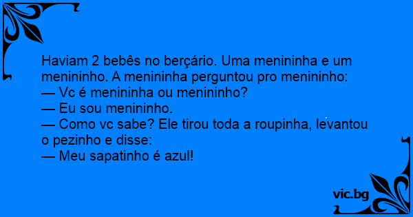 — Como vc sabe? Ele tirou toda a roupinha, levantou o pezinho e disse: