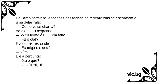 Haviam 2 formigas japonesas passeando,de repente elas se encontram e uma delas fala: