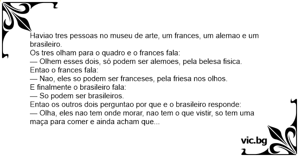 Haviao tres pessoas no museu de arte, um frances, um alemao e um brasileiro.