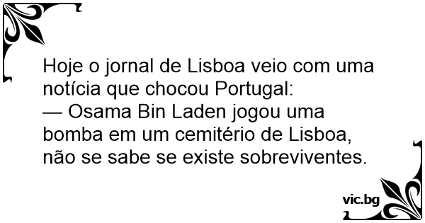 — Osama Bin Laden jogou uma bomba em um cemitério de Lisboa, não se sabe se existe sobreviventes.