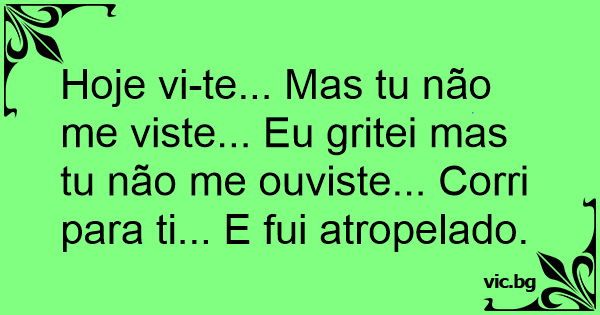 Hoje vi-te... Mas tu não me viste... Eu gritei mas tu não me ouviste... Corri para ti... E fui atropelado.