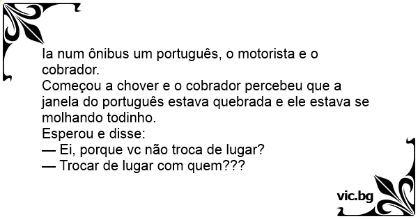 Começou a chover e o cobrador percebeu que a janela do português estava quebrada e ele estava se molhando todinho.