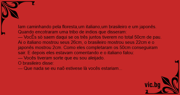 Iam caminhando pela floresta,um italiano,um brasileiro e um japonês. Quando encotraram uma tribo de indios que disseram: