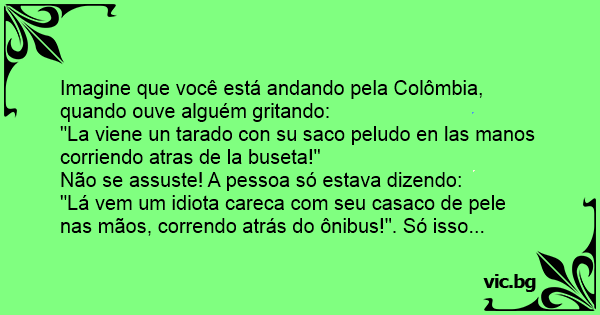 Imagine que você está andando pela Colômbia, quando ouve alguém gritando: