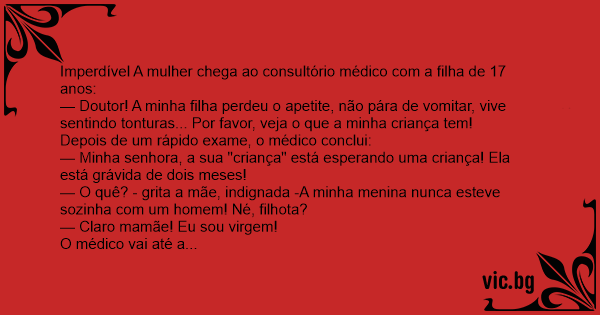 — Minha senhora, a sua "criança" está esperando uma criança! Ela está grávida de dois meses!