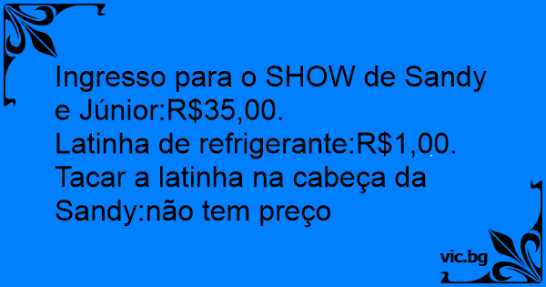 Ingresso para o SHOW de Sandy e Júnior:R$35,00.