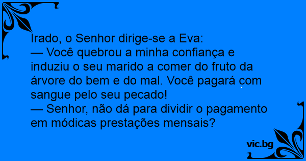 — Você quebrou a minha confiança e induziu o seu marido a comer do fruto da árvore do bem e do mal. Você pagará com sangue pelo seu pecado!