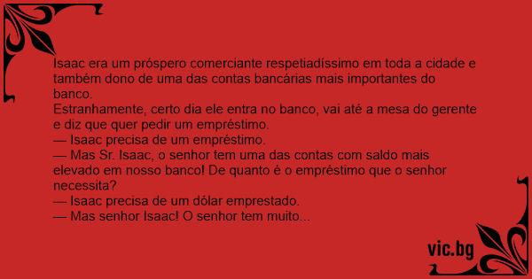 — Mas Sr. Isaac, o senhor tem uma das contas com saldo mais elevado em nosso banco! De quanto é o empréstimo que o senhor necessita?