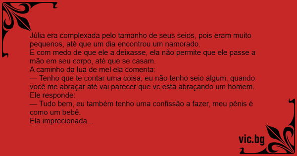 — Tudo bem, eu também tenho uma confissão a fazer, meu pênis é como um bebê.