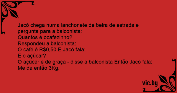 O açúcar é de graça - disse a balconista Então Jacó fala: