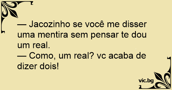 — Jacozinho se você me disser uma mentira sem pensar te dou um real.
