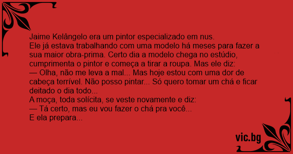 — Olha, não me leva a mal... Mas hoje estou com uma dor de cabeça terrível. Não posso pintar... Só quero tomar um chá e ficar deitado o dia todo...