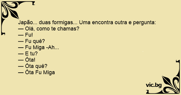 Japão... duas formigas... Uma encontra outra e pergunta: