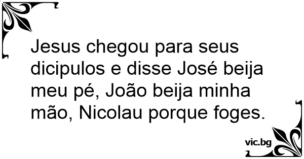 Jesus chegou para seus dicipulos e disse José beija meu pé, João beija minha mão, Nicolau porque foges.