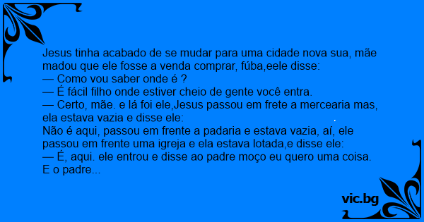 Jesus tinha acabado de se mudar para uma cidade nova sua, mãe madou que ele fosse a venda comprar, fúba,eele disse: