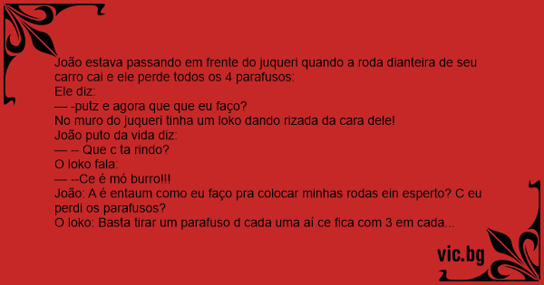 João: A é entaum como eu faço pra colocar minhas rodas ein esperto? C eu perdi os parafusos?