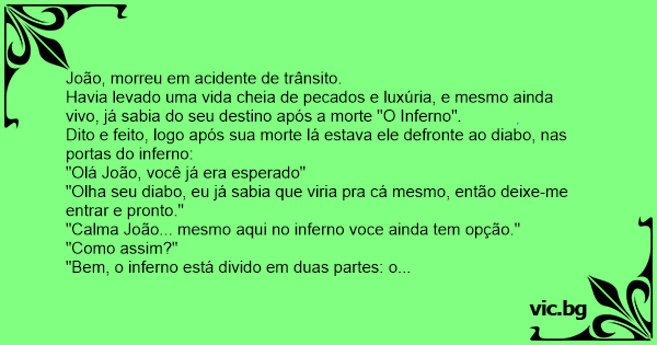"Calma João... mesmo aqui no inferno voce ainda tem opção."