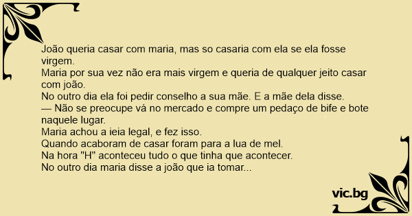Maria por sua vez não era mais virgem e queria de qualquer jeito casar com joão.