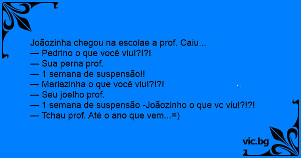 — 1 semana de suspensão -Joãozinho o que vc viu!?!?!
