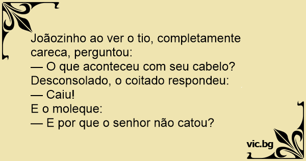 Joãozinho ao ver o tio, completamente careca, perguntou: