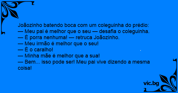 — Meu pai é melhor que o seu — desafia o coleguinha.