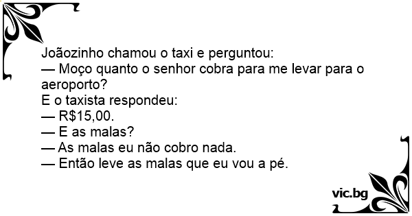 — Moço quanto o senhor cobra para me levar para o aeroporto?