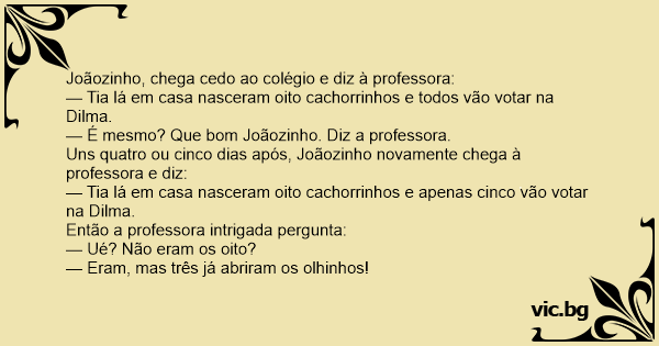— Tia lá em casa nasceram oito cachorrinhos e apenas cinco vão votar na Dilma.
